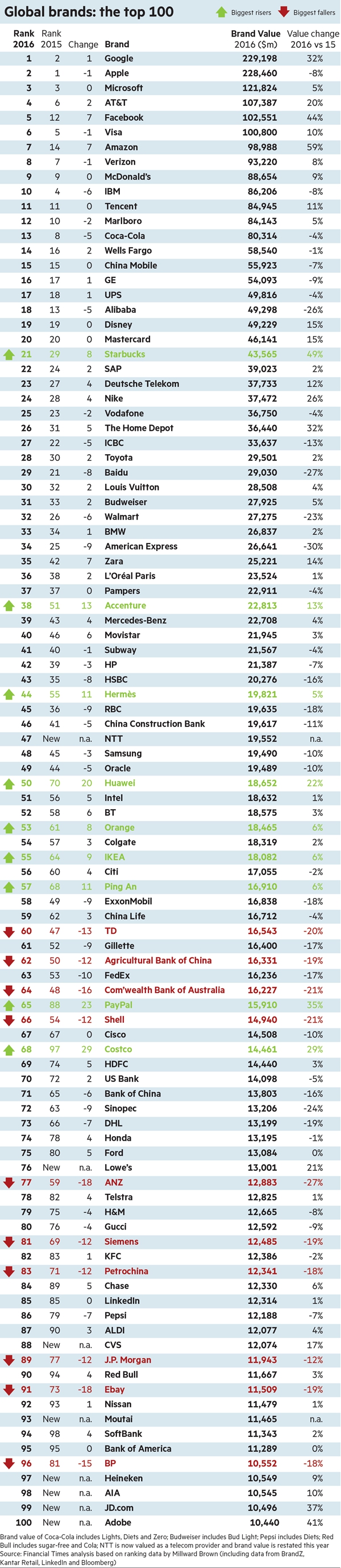 2016年全球最具價(jià)值品牌百?gòu)?qiáng)榜出爐