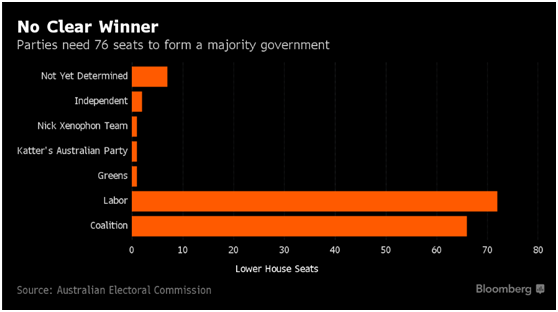 標(biāo)普:澳大利亞選舉膠著令財政前面蒙陰。若澳大利亞政治僵局持續(xù),標(biāo)普可能下調(diào)澳大利亞評級。