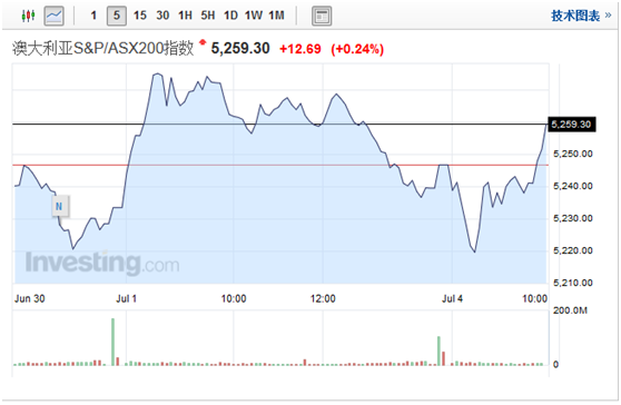 澳大利亞S&P/ASX200指數(shù)在計票期間下降0.1%,最低點至5219.5,但目前已有所回升。