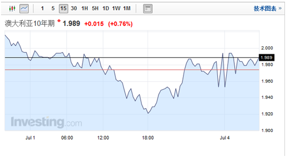 澳洲國債價格下跌,10年期國債收益率上漲2個基點到1.98%,比10年期美國國債要高53個基點。