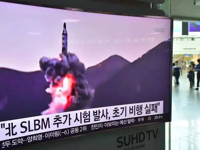 7月9日,韓國首都首爾一座火車站內(nèi),電視屏幕播放著朝鮮發(fā)射潛射導彈新聞。