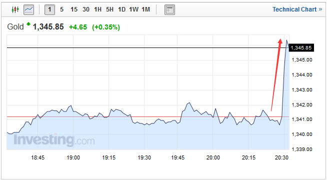 由于美國(guó)二季度實(shí)際GDP大幅不及預(yù)期,黃金期貨短線上漲約5美元