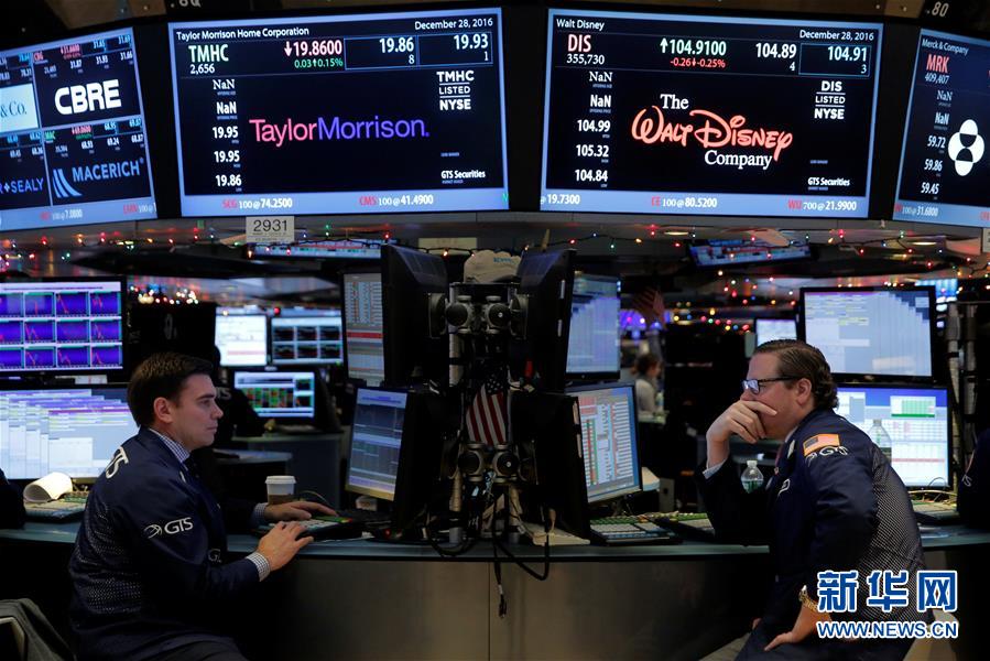 12月28日,交易員在美國(guó)紐約證券交易所內(nèi)工作。當(dāng)天,紐約股市三大股指早盤小幅高開,有市場(chǎng)專家認(rèn)為28日或?qū)⑹堑乐竿黄苾扇f點(diǎn)里程碑的交易日。但隨后有分析人士指出,兩萬點(diǎn)也將是市場(chǎng)獲利回吐的心理大關(guān),因而投資者趨向謹(jǐn)慎,美股隨即有所回落,三大股指震蕩收跌。新華社/路透