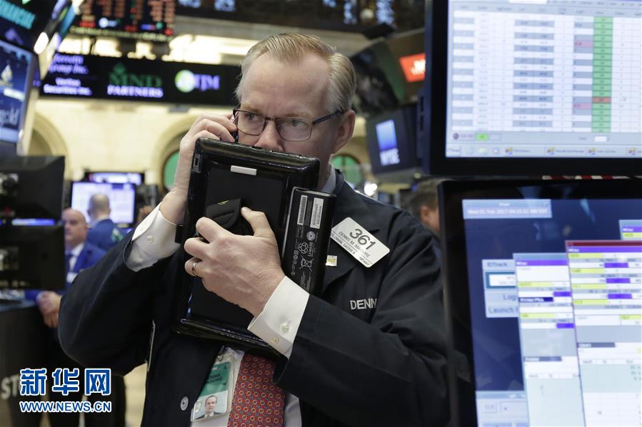 2月1日,交易員在美國紐約證券交易所工作。紐約股市三大股指在2月的第一個交易日上漲。截至當(dāng)天收盤,道瓊斯工業(yè)平均指數(shù)比前一交易日上漲26.85點,收于19890.94點,漲幅為0.14%。標(biāo)準(zhǔn)普爾500種股票指數(shù)微漲0.68點,收于2279.55點,漲幅為0.03%。納斯達(dá)克綜合指數(shù)上漲27.86點,收于5642.65點,漲幅為0.50%。新華社/美聯(lián)