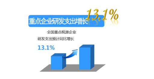 八:重點稅源企業(yè)研發(fā)支出增長13.1%,創(chuàng)新發(fā)展形勢持續(xù)向好。2020年,受益于研發(fā)費用加計扣除等稅收優(yōu)惠政策,全國重點稅源企業(yè)研發(fā)支出預計同比增長13.1%,其中,制造業(yè)增長9.6%,軟件和信息技術(shù)服務業(yè)增長25.3%,均保持向好的創(chuàng)新發(fā)展勢頭。享受研發(fā)費用加計扣除政策的33萬戶企業(yè)購進高技術(shù)設備和高技術(shù)服務金額同比增長15.8%。“十三五”時期,重點稅源企業(yè)研發(fā)支出保持兩位數(shù)以上的較快增速,為我國經(jīng)濟高質(zhì)量發(fā)展增添了強大后勁。