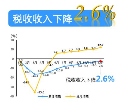 一:全年稅收收入下降2.6%,圓滿完成財政預算安排的稅收收入目標。2020年,全國稅務部門組織的稅收收入(已扣除出口退稅)完成136780億元,同比下降2.6%,圓滿完成財政預算安排的稅收收入目標。從全年走勢看,稅收收入增速自3月份“觸底”后連續(xù)9個月回升,反映了我國經(jīng)濟復蘇向好的勢頭,但受疫情和落實減稅降費影響,全年稅收收入下降2.6%?!笆濉睍r期,全國稅收收入完成65.7萬億元,比“十二五”時期增加18.5萬億元,為經(jīng)濟社會發(fā)展提供了堅實財力保障。