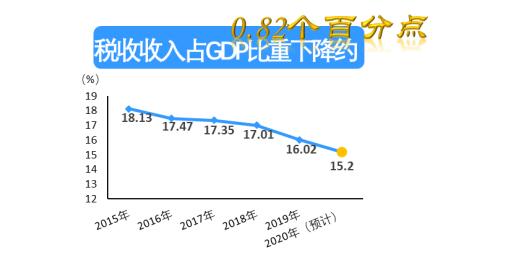 五:稅收收入占GDP比重下降約0.82個百分點,企業(yè)稅費負擔進一步減輕。2020年,隨著支持疫情防控和經(jīng)濟社會發(fā)展減稅政策落地,我國一般公共預算收入中稅收收入占GDP比重預計降至15.2%左右,較2019年繼續(xù)回落約0.82個百分點。
