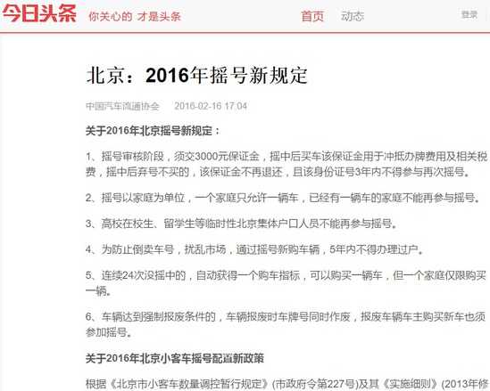 2月17日上午,一則《北京:2016年搖號新規(guī)定》的報道在網(wǎng)上流傳,“連續(xù)24次沒搖中自動獲得一個購車指標(biāo)”、“已有車的家庭不能再參與搖號”、“臨時性北京集體戶口人員不能再參與搖號”等新規(guī)定再次觸動無數(shù)久搖不中人們的敏感神經(jīng)。