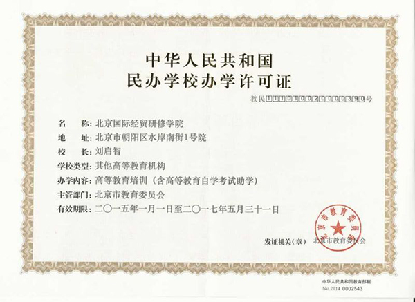 北京國際經(jīng)貿(mào)研修學(xué)院辦學(xué)許可證