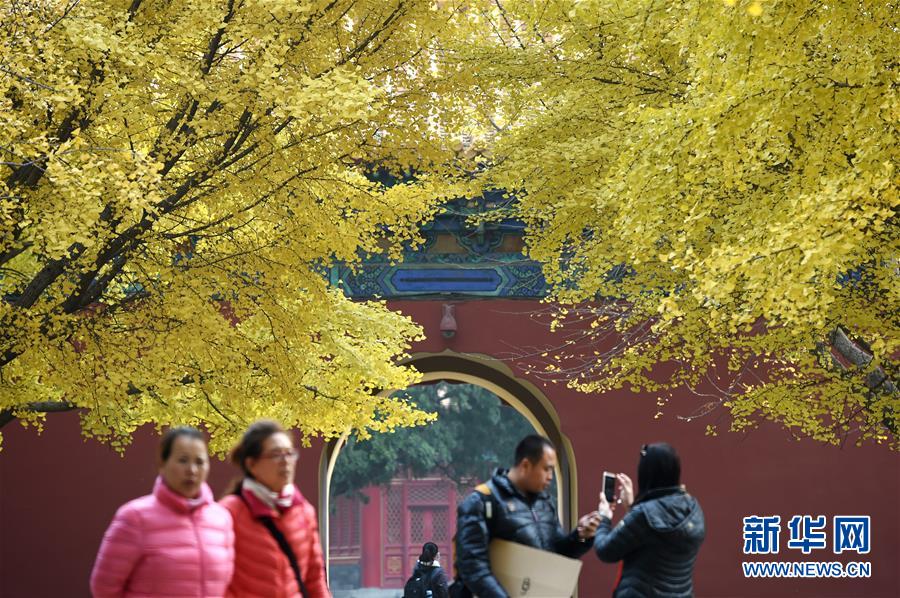 近日,北京中山公園內(nèi)銀杏樹葉滿目金黃,吸引不少市民和游客前來觀賞。