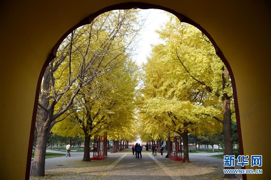 11月10日,游客在中山公園觀賞銀杏樹。