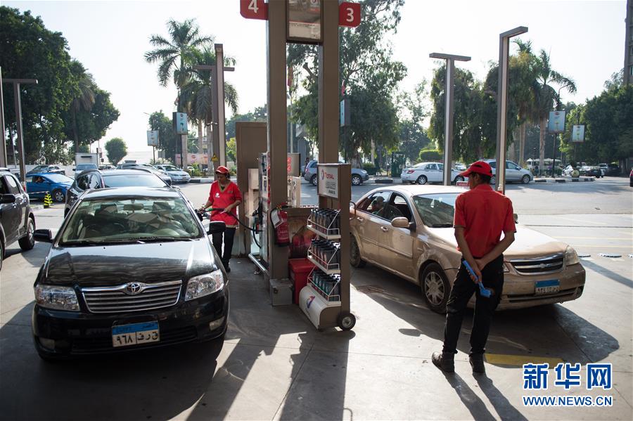 10月17日,在埃及開羅的馬阿迪區(qū),道達(dá)爾加油站的一名女性員工為顧客的車輛加油。