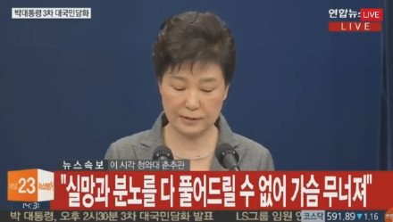 樸槿惠發(fā)表第三次談話:適時辭去總統(tǒng)職務(wù)