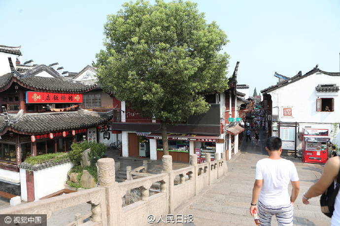 @人民日報:【上海:溫度計太陽下10分鐘“爆表”破50】2016年7月24日,上海古鎮(zhèn)七寶老街,平日里人頭攢動的老街,游人寥寥無幾??潭葹?0的溫度計放在石橋上,10分鐘左右,溫度顯示直接“爆表”。