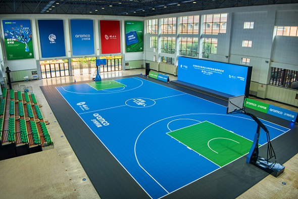 沙特阿美與姚基金與中國男子籃球職業(yè)聯(lián)賽(CBA)在諸暨海亮融愛園正式啟用全新改造的“投入新可能”公益球場
