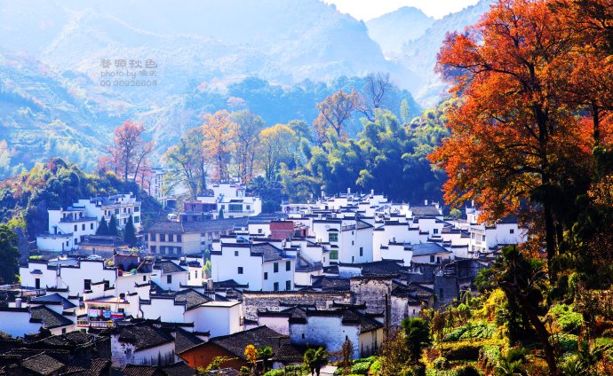 白墻黑瓦的婺源被周圍火辣的紅葉寵愛著,遠(yuǎn)處的山不禁有一絲失落感。好攝之徒們總會及時(shí)趕到婺源的石城和長溪去記錄下這短暫的美。