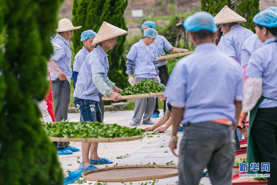 采制鐵觀音比一般品種要求嚴(yán)格而精細(xì),其工序:鮮葉→晾青→曬青→做青→炒青→初揉→初烘→復(fù)揉→烘干。新華網(wǎng) 王雄 攝 飛手 林楷煜