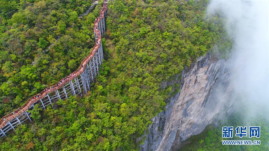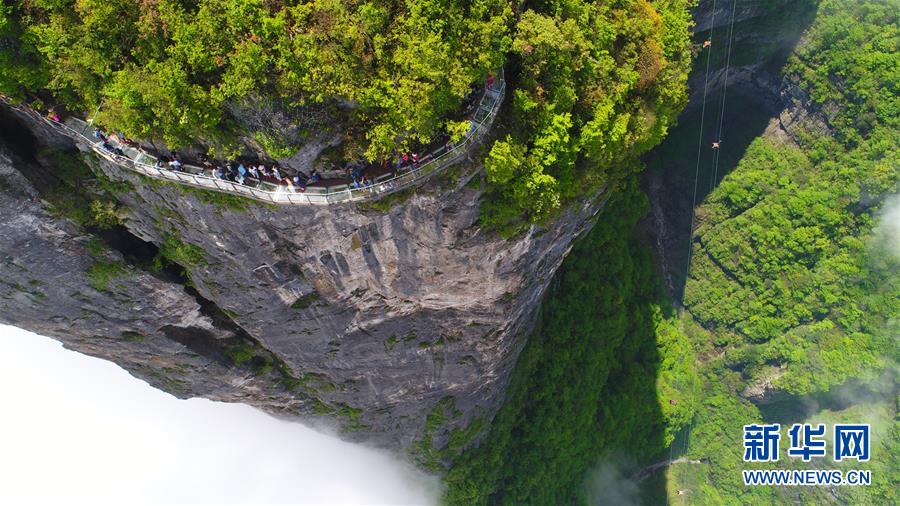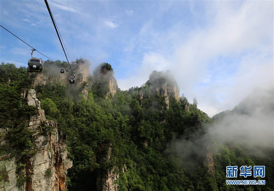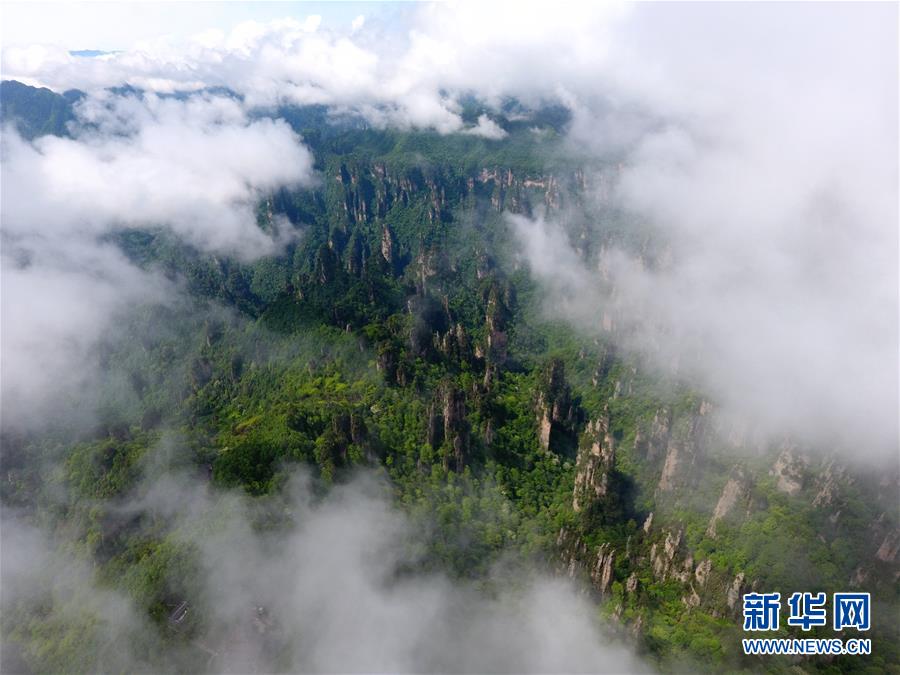 這是5月8日航拍的張家界天門山風(fēng)景區(qū)云海美景。當(dāng)日,雨過(guò)天晴的湖南張家界云海翻騰,如詩(shī)如畫。 新華社發(fā)(邵穎 攝)