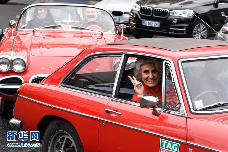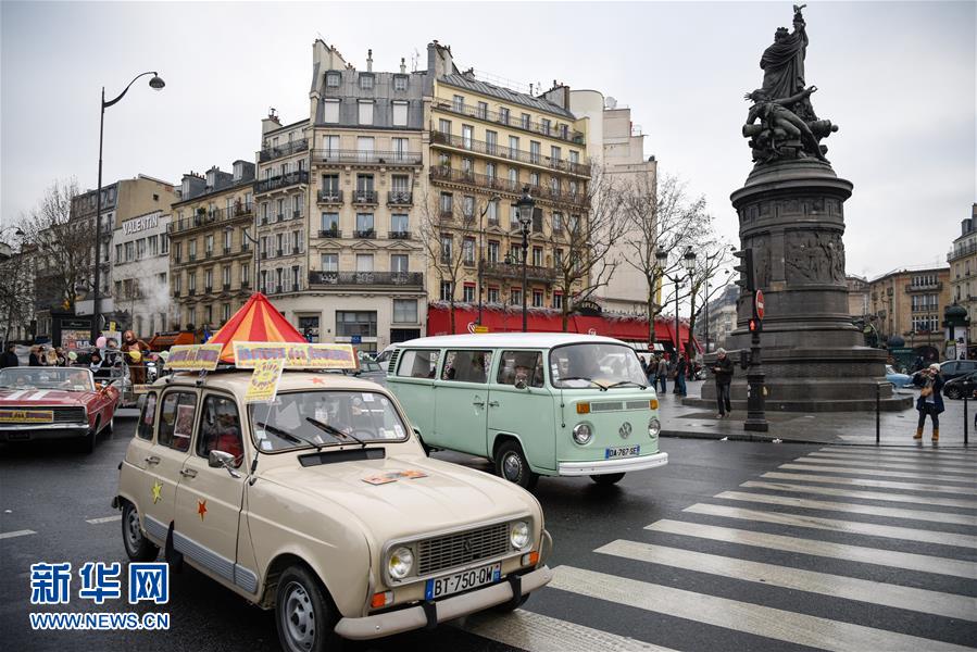 1月8日,老爺車駛過法國巴黎克利希廣場。當日上午,700余輛轎車、公交車、摩托車、自行車等各式老爺車駛過巴黎的大街小巷,參加第17屆老爺車穿越巴黎巡游活動。新華社記者陳益宸攝