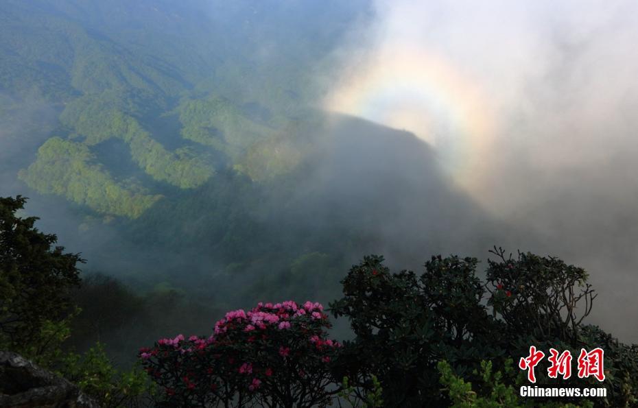 5月中旬,有“四川十大最美杜鵑花觀賞地”美稱的四川巴中南江縣光霧山高山杜鵑進(jìn)入盛花期,綿延數(shù)百里的杜鵑花與藍(lán)天和大山構(gòu)成一幅幅美麗的畫卷,美不勝收。光霧山杜鵑花有深紅、淡紅、玫瑰、紫、白等多種色彩,站在山頂遠(yuǎn)遠(yuǎn)望去猶如山林染了涂了胭脂,因此杜鵑俗稱“映山紅”。(程永紅 攝)
