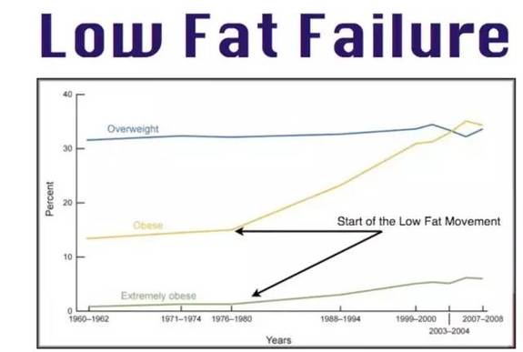 實際上,現(xiàn)在對低脂飲食的推廣還要追溯到二戰(zhàn)后,科學(xué)家對二戰(zhàn)時期心臟病發(fā)病率增加的研究調(diào)查。研究表明,食用飽和脂肪會直接提高心臟病發(fā)病風(fēng)險,這成為后來營養(yǎng)學(xué)的核心理念。肉和奶制品含有大量“不健康”的飽和脂肪。上世紀(jì)70年代美國提供飲食指導(dǎo)方針之際,心臟病正是造成美國人死亡的第一殺手。因此公共衛(wèi)生官員急于展開低脂運(yùn)動。