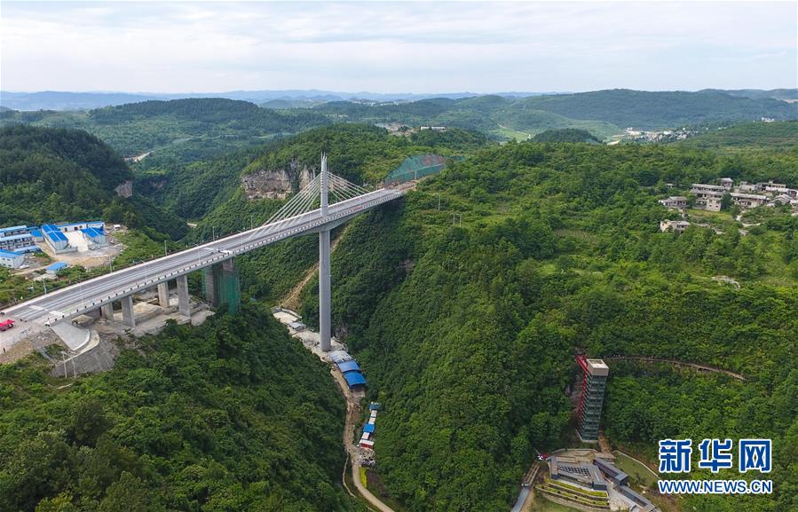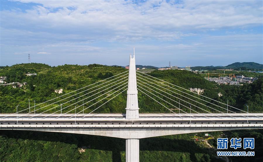 俯瞰順利竣工的干溝大橋(6月6日攝)。大橋主橋墩呈現(xiàn)“蘆笙”造型。 6月6日,由中鐵五局承建的貴州省黔南布依族苗族自治州龍里縣干溝大橋順利竣工。該橋長285米,主塔高137米,大橋主橋墩以民族樂器“蘆笙”為原型建造,造型優(yōu)美。新華社記者 劉續(xù) 攝