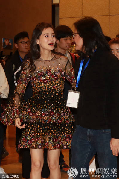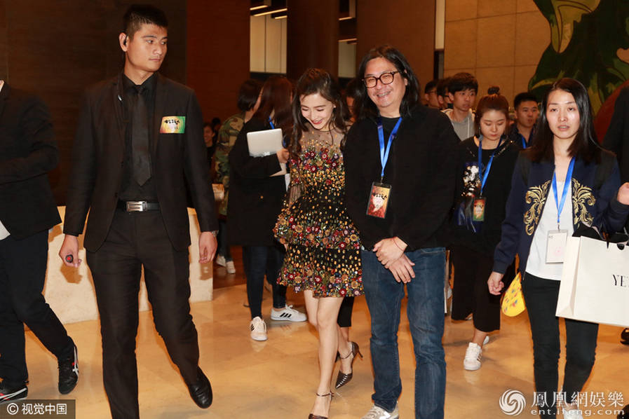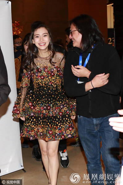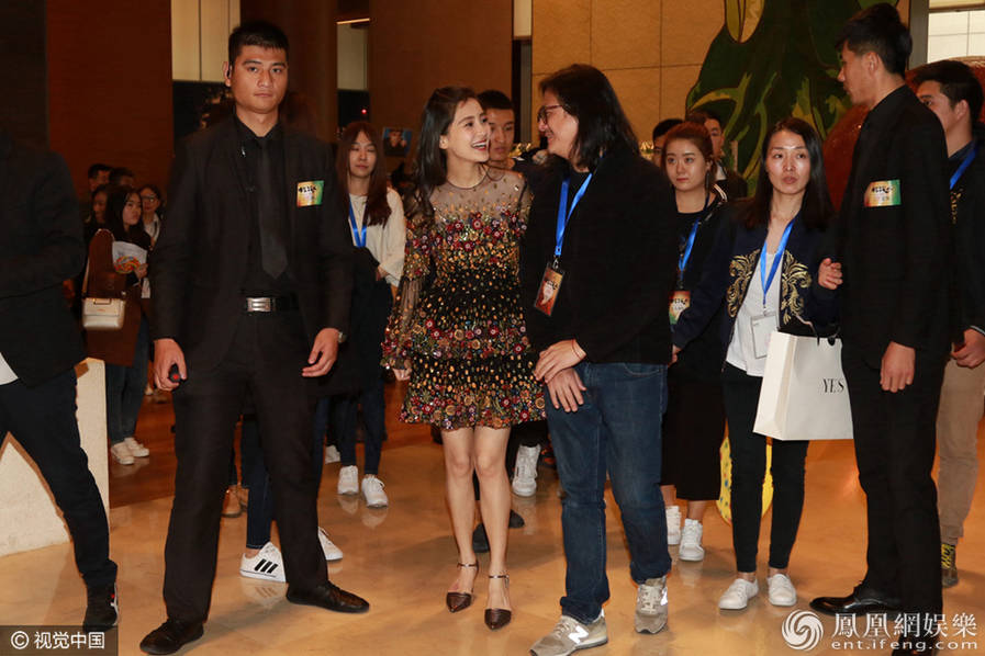 10日,身懷有孕的baby現(xiàn)身北京某會場。離開時,她著寬松裙獲保安開道,挺孕肚不忘秀美腿,與友人熱聊擁抱笑開顏。(圖/視覺中國)