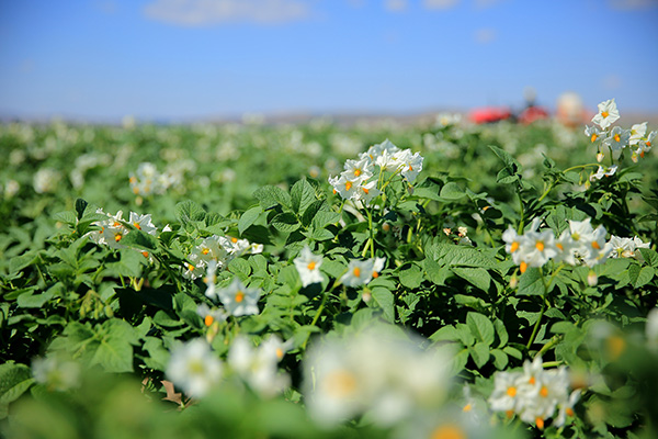 盛夏時(shí)節(jié),中國(guó)馬鈴薯之鄉(xiāng)甘肅定西的馬鈴薯進(jìn)入開(kāi)花期,眾多白色的花朵扮美田野。
