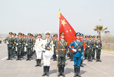 中國人民解放軍三軍儀仗隊(duì)政委張兆宏大校介紹說,為參加本次閱兵活動,三軍儀仗隊(duì)專門成立了由90人組成、72人正式受閱的方隊(duì)。為更好地促進(jìn)中巴兩國軍事交流合作,更好地展現(xiàn)中國人民解放軍“和平之師、威武之師、文明之師”的良好形象,方隊(duì)進(jìn)行了認(rèn)真準(zhǔn)備、嚴(yán)格訓(xùn)練,還對隊(duì)員進(jìn)行了巴基斯坦風(fēng)土人情等方面的培訓(xùn)。