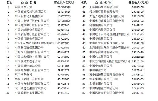 附:2015年中國(guó)企業(yè)營(yíng)業(yè)收入前80名