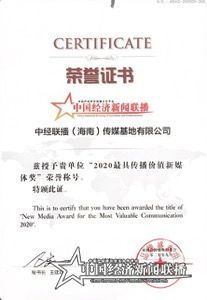 中國經(jīng)濟新聞聯(lián)播榮獲第15屆亞洲品牌盛典“2020最具傳播價值新媒體獎”