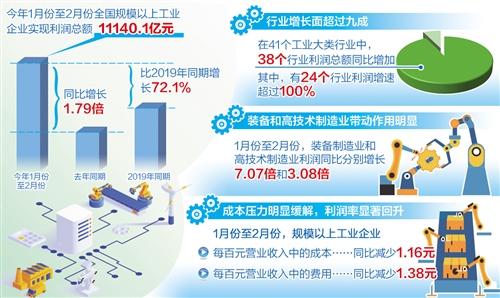 前兩月九成以上行業(yè)利潤增長(zhǎng),近六成行業(yè)利潤翻番——