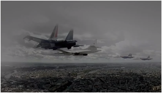 空中編隊(duì)中亮相的武器裝備有:米-26重型直升機(jī)、米-8AMTSh運(yùn)輸直升機(jī)、米-24武裝直升機(jī)、卡-52武裝直升機(jī)、米-28N武裝直升機(jī)、伊爾-76運(yùn)輸機(jī)、伊爾-78運(yùn)輸機(jī)和圖-95MS轟炸機(jī)、伊爾-78運(yùn)輸機(jī)和圖-160轟炸機(jī)、圖-160轟炸機(jī)和蘇-35戰(zhàn)斗機(jī)、蘇-35戰(zhàn)斗機(jī)、蘇-24M戰(zhàn)斗轟炸機(jī)、米格-31K戰(zhàn)斗機(jī)(掛載“匕首”導(dǎo)彈)、蘇-57第五代戰(zhàn)斗機(jī)、蘇-34蘇-30SM蘇-35戰(zhàn)斗機(jī)編隊(duì)、“勇士”和“雨燕”飛行表演隊(duì)(蘇-30SM和米格-29戰(zhàn)斗機(jī))、蘇-25攻擊機(jī)(拉煙表演)。