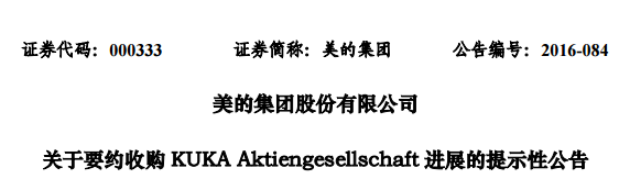 美的曾在6月29日公告,稱公司與庫卡集團簽署了《投資協(xié)議》,強調(diào)公司沒有與庫卡集團簽署控制協(xié)議,沒有促使庫卡集團退市或?qū)炜ㄟM行重組的意愿。公司支持庫卡集團監(jiān)事會及執(zhí)行管理委員的獨立性,并保持庫卡集團融資策略的獨立性。