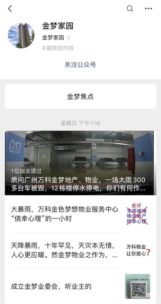 在查找資料的過程中,深藍財經(jīng)發(fā)現(xiàn)了一個名為“金夢家園”的微信公眾號,該公眾號的運營者疑似萬科金色夢想業(yè)委會。