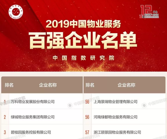 2019年中國物業(yè)服務(wù)百強企業(yè)排行,來自中國指數(shù)研究院