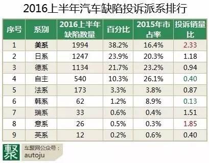 一、 投訴量增長(zhǎng):美系成第一