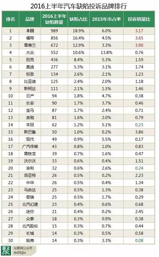 2016上半年投訴排行榜:最坑爹汽車在此