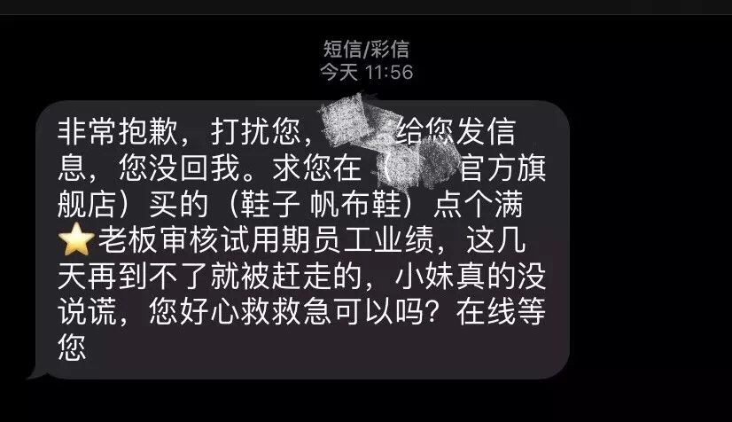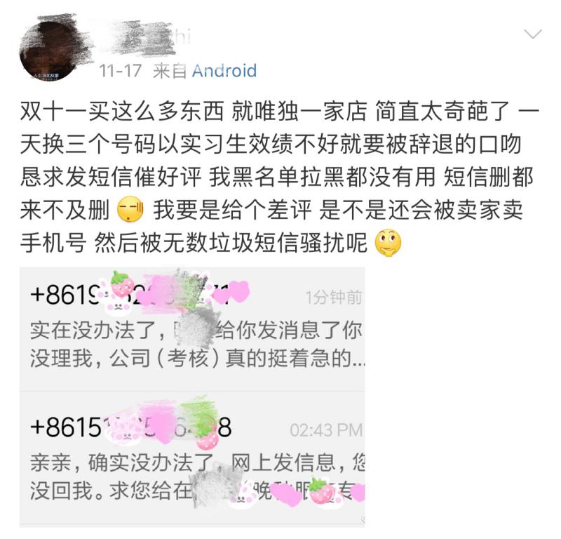 狂轟亂炸型:簡單來說就是不僅在平臺私信你索要好評,還給你的手機(jī)發(fā)短信、打電話索要好評,并且一天多次。