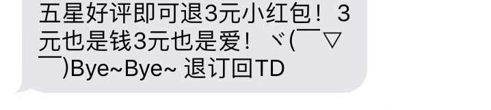 利誘型:五星好評即可退3元小紅包!3元也是錢,3元也是愛!