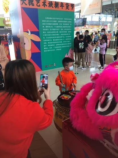 商業(yè)綜合體內(nèi),擺放了10個年貨展區(qū)。記者看到,除了本地的農(nóng)特產(chǎn)、生鮮水果等常見的食用品展區(qū)外,還有醒獅、陶瓷文創(chuàng)等有意思的展區(qū)。