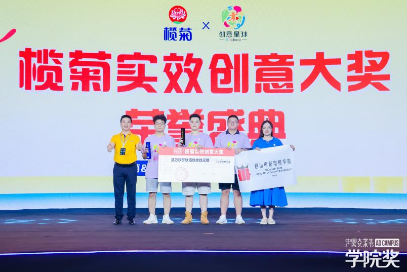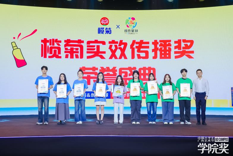 備受學(xué)子們期待的“欖菊實(shí)效創(chuàng)意獎(jiǎng)”也在本次盛典上正式頒布!經(jīng)過頂尖學(xué)府名師、創(chuàng)意行業(yè)大咖、企業(yè)方代表、欖菊校園大使“蚊化人”共同遴選,為欖菊品牌評(píng)審出最符合實(shí)效需求的優(yōu)秀作品。今年“欖菊實(shí)效創(chuàng)意獎(jiǎng)”共設(shè)置獎(jiǎng)金數(shù)為99999元人民幣,還特別設(shè)置了29999元欖菊實(shí)效創(chuàng)意大獎(jiǎng),鼓勵(lì)廣大青年學(xué)子共創(chuàng)欖菊實(shí)效佳作!欖菊實(shí)效創(chuàng)意獎(jiǎng)的設(shè)立和發(fā)展延續(xù)為青年學(xué)子提供多一個(gè)展示自己執(zhí)行創(chuàng)意能力的機(jī)會(huì),助力欖菊挖掘和培養(yǎng)行業(yè)內(nèi)的新銳青年才俊。同時(shí)也鼓勵(lì)更多的青年學(xué)子在創(chuàng)作時(shí)注重創(chuàng)意的實(shí)踐性和實(shí)效性,為廣告和創(chuàng)意領(lǐng)域注入新的活力和動(dòng)力!活動(dòng)現(xiàn)場(chǎng),央影(北京)傳媒有限公司執(zhí)行董事黨海燕女士宣布最終結(jié)果,并與天津師范大學(xué)新聞傳播學(xué)院副院長(zhǎng)胡振宇女士共同為創(chuàng)作團(tuán)隊(duì)頒發(fā)榮譽(yù)。