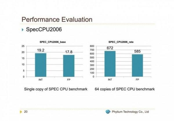 其實(shí),飛騰2000早在去年就已經(jīng)公布,也就是在國際大會hotchip公布的“火星”,根據(jù)當(dāng)時的PPT,“火星”在權(quán)威的Spec 2006測試中,成績?yōu)檎麛?shù)672,浮點(diǎn)585,足以和Xeon E5-2699v3相媲美。誠然,由于去年還沒有產(chǎn)品,這個成績是采用模擬器的測試分?jǐn)?shù)。