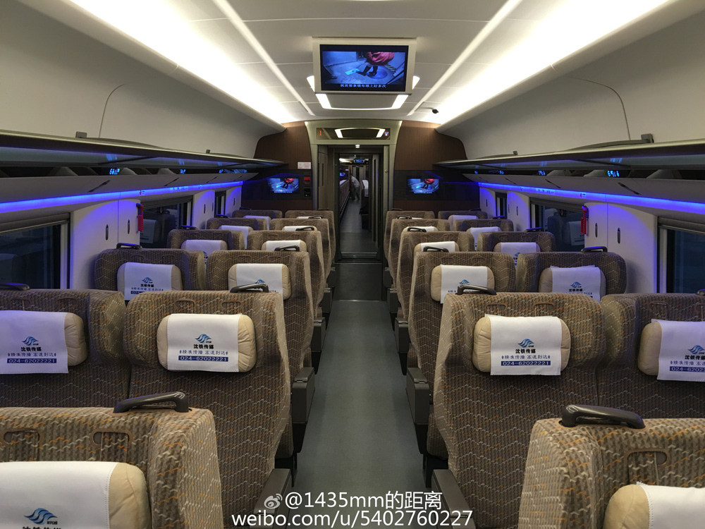 今日清晨大連北站8站臺(tái),由CRH-0207和CRH-0503重聯(lián)擔(dān)當(dāng)?shù)腉8041次列車沿哈大高鐵駛向沈陽站。經(jīng)過前期各項(xiàng)測(cè)試合格后,本階段兩輛標(biāo)準(zhǔn)動(dòng)車組將在實(shí)際載客運(yùn)營的條件下進(jìn)一步積累乘客的實(shí)際乘坐體驗(yàn),為后期量產(chǎn)積累更多經(jīng)驗(yàn)。兩輛動(dòng)車組均為350km/h速度級(jí)別的統(tǒng)型動(dòng)車組:單列總定員556人,其中商務(wù)座定員10,一等座定員28,二等座定員518;4車設(shè)置無障礙設(shè)施,5車為餐座合造車。兩標(biāo)動(dòng)座位分布完全一致,車窗設(shè)置合理,車內(nèi)各排均可享受車外風(fēng)光。