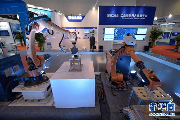 6月29日,在世界智能大會現(xiàn)場,一家參展企業(yè)展示智能產(chǎn)品。新華社記者白禹攝