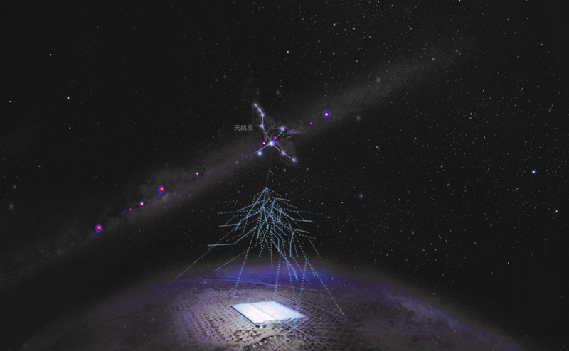 ↑高海拔宇宙線觀測站觀測示意圖(中科院高能物理研究所供圖)