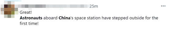 外媒關(guān)注中國空間站航天員首次出艙 多國網(wǎng)友點贊
