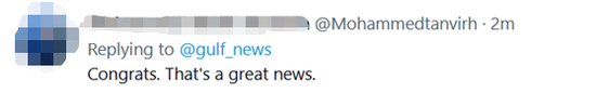 來自阿聯(lián)酋的網(wǎng)友:“祝賀。這是好消息?!薄?/p>