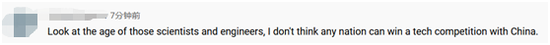 “看看這些科學家和工程師的年齡,我認為沒有任何國家能在與中國的技術(shù)競爭中獲勝。” ↓