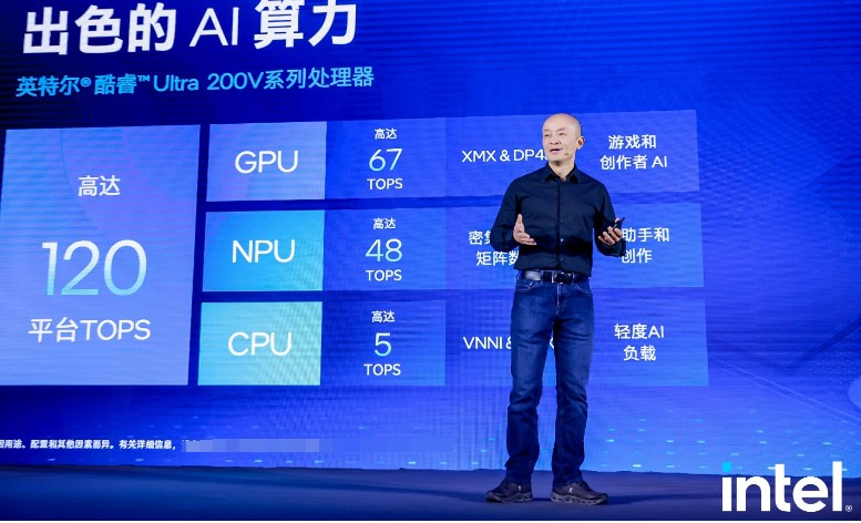 英特爾酷睿Ultra 200V系列處理器擁有極具突破性的x86能效,在圖形性能、應(yīng)用兼容性、安全性和AI計算能力上都有卓越表現(xiàn),CPU、NPU和GPU的整體平臺AI算力高達(dá)120 TOPS,AI實力不容小覷。在現(xiàn)場,英特爾攜ISV從游戲、創(chuàng)作、AI和續(xù)航四大常見場景展現(xiàn)酷睿Ultra 200V的革新AI PC體驗: